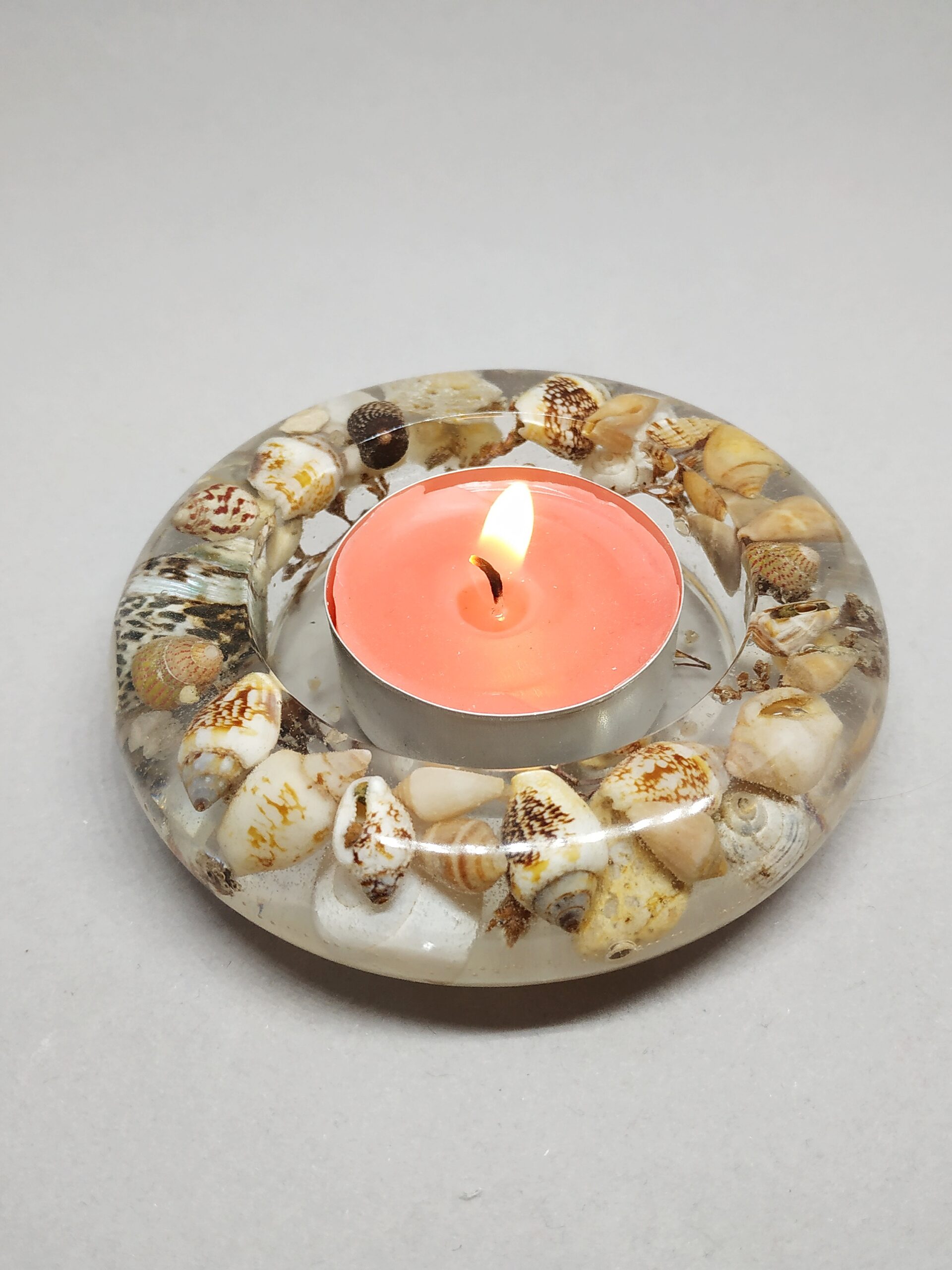 Svícen nesoucí mušle a kamínky.